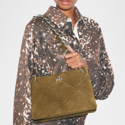 Tory Burch Kira Small Diamond-Quilted Suede Shoulder Bag